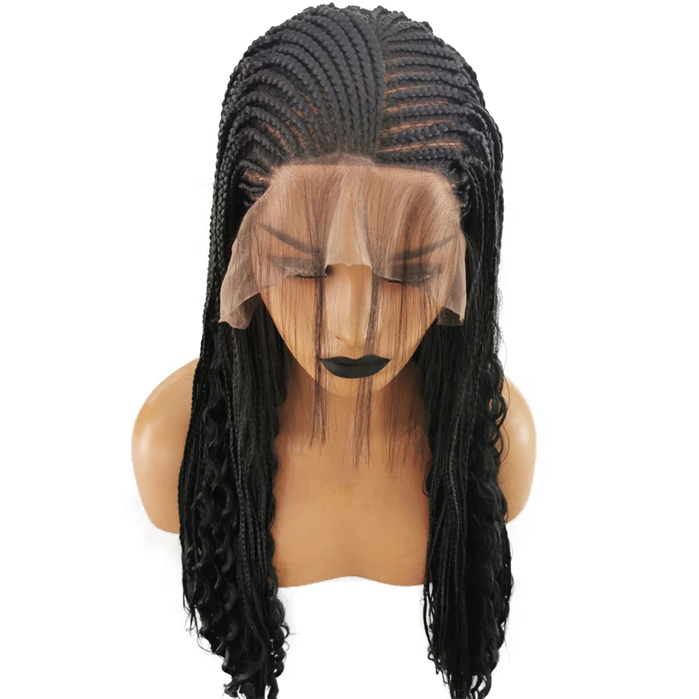 Fanxiton 13x6 Braids Curly Hair Lace Front Wigs Synthetic Long Wigs Heat Resistant Fiber Hair For Black Women Curly Black Color Aliexpress